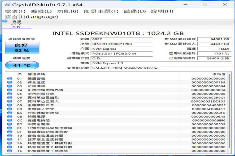 M.2 NVMe SSD--intel 英特爾 M.2 NVMe 型號/SSDPEKNW010T8/1TB