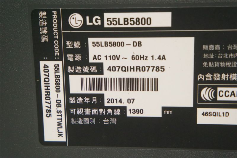 樂金 LG 55LB5800 55吋LED液晶電視 視訊盒+HDMI+AV+色差+USB(二手良品、全新燈條、高雄面交自取) NT:4500 |